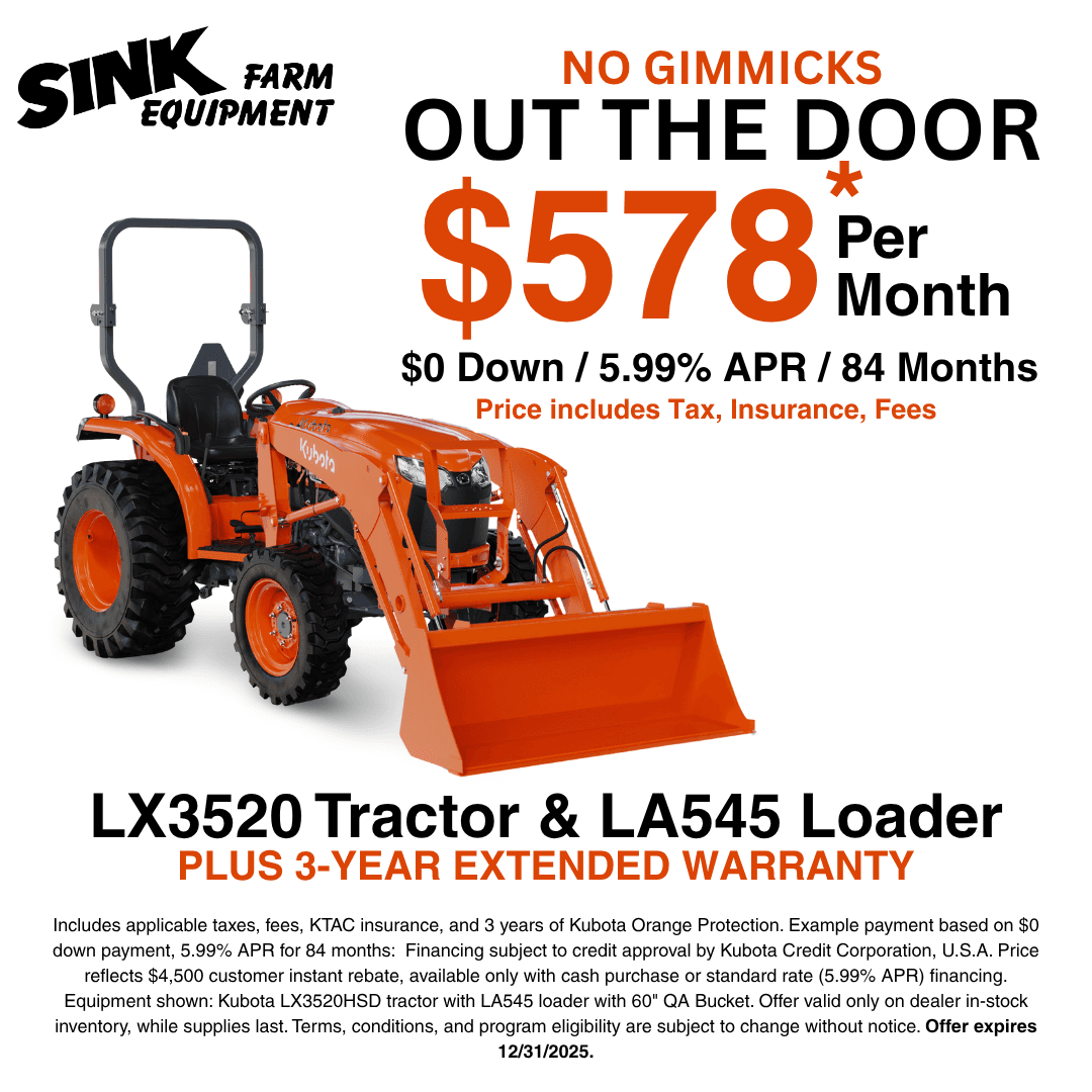 In 1989, Sink Farm Equipment added the Kubota brand to its portfolio, offering mowers and tractors that homeowners widely used. The addition of Kubota allowed the business to grow and reach a new audience.